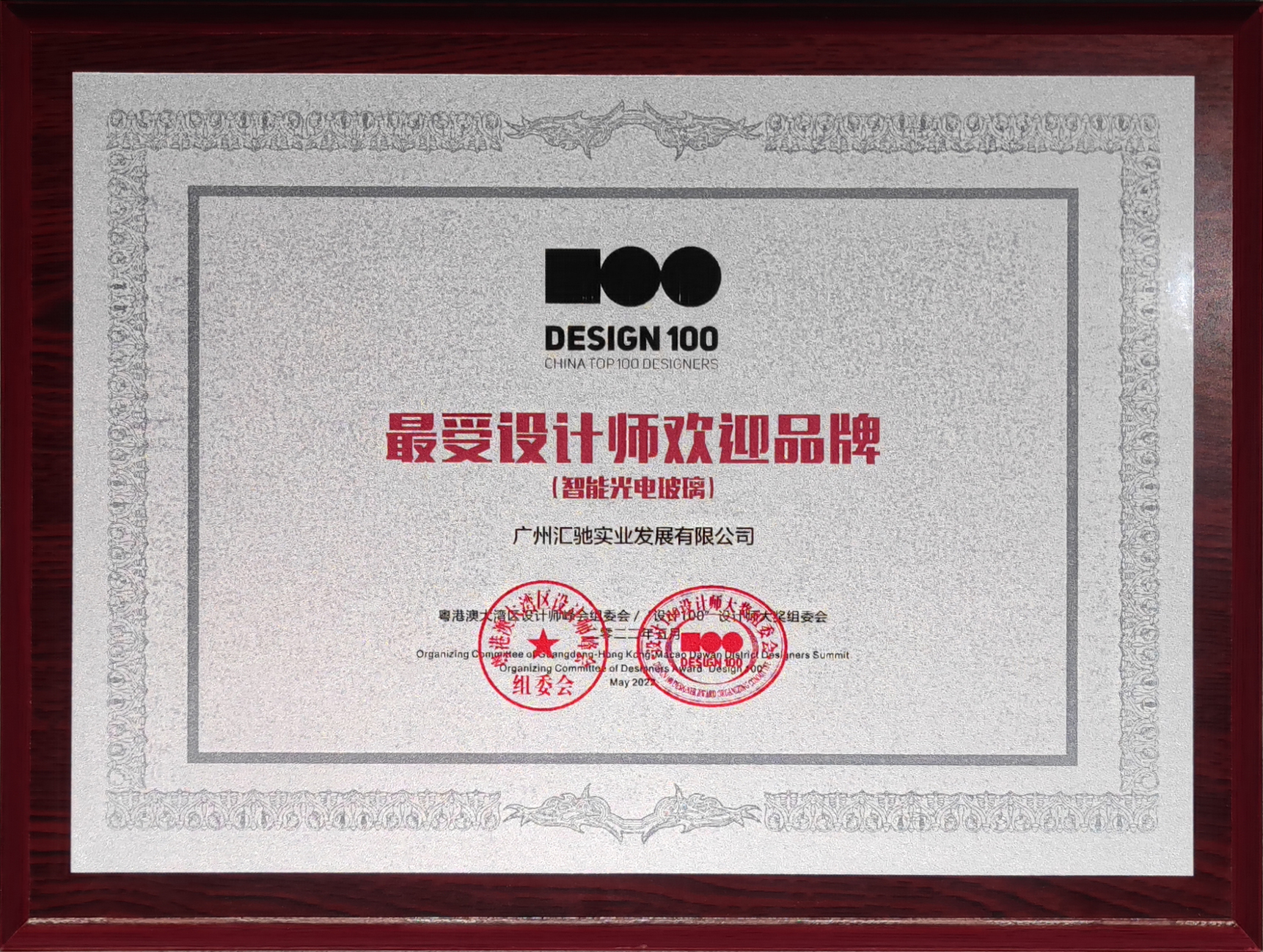 廣州匯馳實業發展有限公司的智能光電玻璃產品在本屆活動中獲得“最受設計師歡迎品牌獎”,表明已經有越來越多的精英設計師敢于使用藝術與科技的結合,他們認為匯馳實業的智能光電玻璃不但可以輕松切換通透與隱蔽場景模式,還能讓玻璃上的圖案動起來,給人不一樣的神奇空間體驗,讓設計效果與眾不同。
