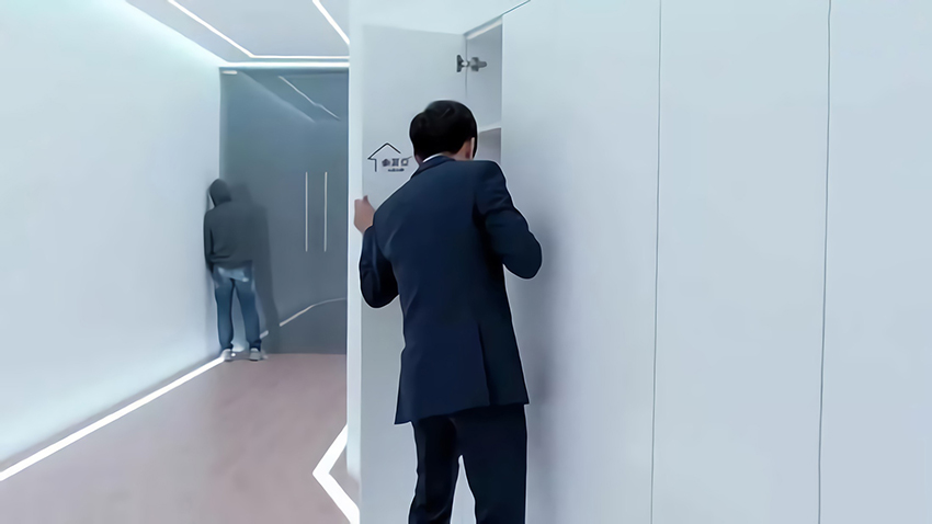 劇中程浩經常瀟灑的按一下遙控器,然后整個透明的玻璃就變成了純白色,原本透光的玻璃瞬間就像拉上了窗簾一樣。