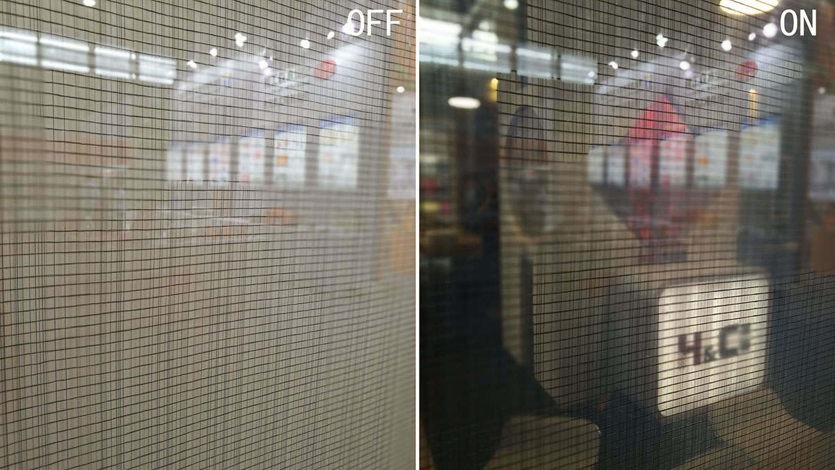 夾絲調光玻璃:同一位置的兩種效果