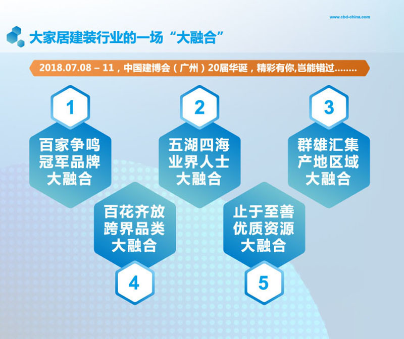 廣州建博會規模居于全球同類展會之首,覆蓋大家居建裝行業全產業鏈,既是涵蓋全產業鏈的“全能冠軍”,又是每個題材板塊的“單打翹楚”。如今中國建博會(廣州)不斷引領行業發展潮流,真正開啟中國大家居建裝行業五大“融合”的大舞臺之門。